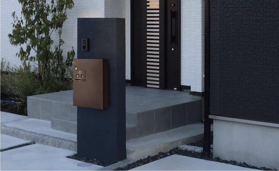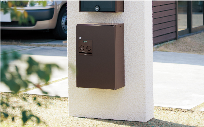 | 住まいの外観に洗練された雰囲気を添える「コンボ」。シンプルなデザインはもちろん、宅配の使用頻度や設置場所など、さまざまなニーズに合わせて選べる多彩なバリエーションも魅力のひとつです。カラーは、味わいのあるシックな4色をご用意しました。荷物が届いていることは、「使用中」の表示で確認することができ、帰宅の度に開閉する手間は不要です。 |