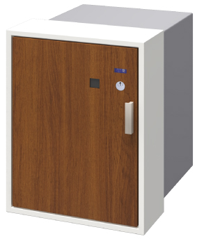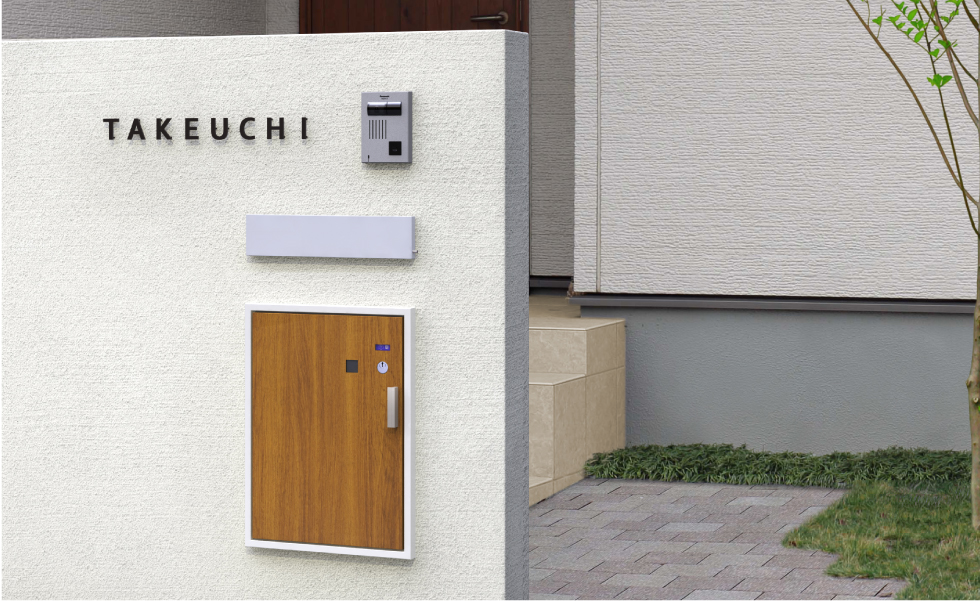 端正なスクエアフォルムが特徴的な「ポルティ」。装飾を削ぎ落としたシンプルなデザインは、住まいのテイストを選びません。設置方法は、壁埋め込みとスタンドの2タイプ。壁に埋め込んだ場合は、いっそうスッキリしたファサードを演出することが可能です。大きな宅配物にも対応できる、ゆとりの大容量も魅力の宅配ボックスです。