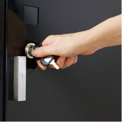 表専用キーでシリンダー錠を解錠し、扉を開けます。