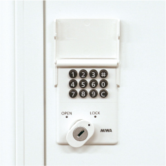 | 電気不要のメカ式プッシュボタン錠。 不要なランニングコストはかかりません。 暗証番号もお好みの番号に設定可能です。 (錠は日本製です。) |